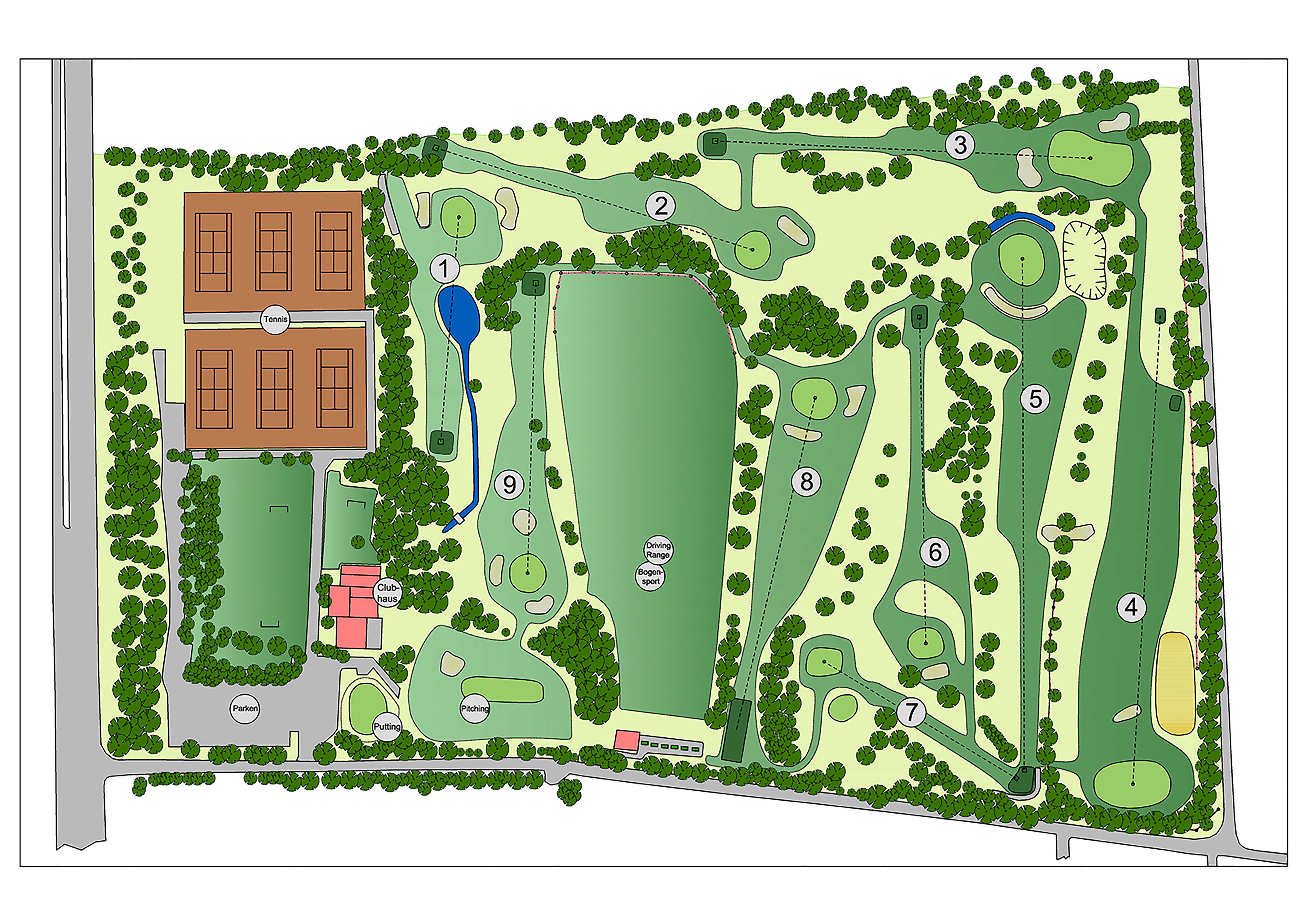 Der neu gestaltete Platz bietet auf 9 Bahnen mit schwierigen Wasserhindernissen und raffiniert angelegten Bunkern viel Abwechslung. HIER finden Sie die neue Platzgestaltung. Golf Anfänger haben die Möglichkeit, intensiv das Kurzspiel zu erlernen. Für Fortgeschrittene und erfahrene Spieler ist der Platz, der bisher noch nicht unter Par gespielt wurde, eine sportliche Herausforderung.